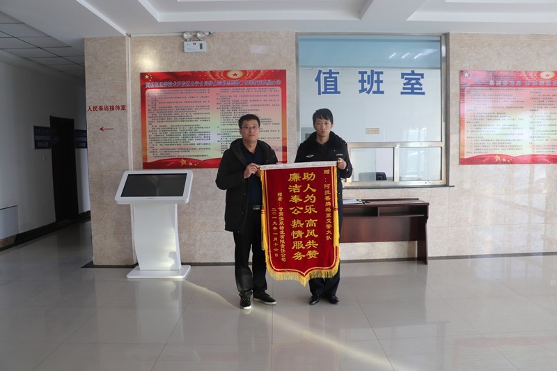 2018年10月份開(kāi)始,甘肅泓欣物流有限責(zé)任公司負(fù)責(zé)運(yùn)輸開(kāi)發(fā)區(qū)境內(nèi)大紅新能源風(fēng)電急需的不可拆卸貨物,在運(yùn)輸過(guò)程中,因運(yùn)輸物件車輛的外廓尺寸超過(guò)規(guī)定標(biāo)準(zhǔn),通行期間給大隊(duì)轄區(qū)沿線交通安全帶來(lái)較大隱患。該公司經(jīng)與騰格里交巡警大隊(duì)溝通協(xié)調(diào),大隊(duì)領(lǐng)導(dǎo)高度重視此項(xiàng)工作,積極調(diào)集警力,科學(xué)安排行駛路線和時(shí)間,全力疏導(dǎo)車輛運(yùn)輸路段沿線交通秩序,在保障安全通行的前提下,將對(duì)過(guò)往社會(huì)車輛的實(shí)際影響降到最低,最終成功護(hù)送100余輛運(yùn)輸車輛順利到達(dá)目的地。為了表達(dá)謝意,感謝交巡警大隊(duì)在企業(yè)需要幫助的時(shí)候所給予的工作支持。該運(yùn)輸企業(yè)負(fù)責(zé)人殷先生特意來(lái)到騰格里公安分局對(duì)幫助疏導(dǎo)運(yùn)輸?shù)慕谎簿箨?duì)和民警表示由衷的感謝,并送上“助人為樂(lè)、高風(fēng)共贊、廉潔奉公、熱情服務(wù)”錦旗一面,