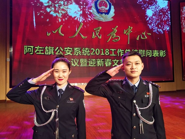 潘蕾是阿左旗公安局交警大隊女子特勤中隊的輔警,2016年2月通過層層選拔進入公安隊伍,之后就是一連串的魔鬼式訓(xùn)練,周敏就是那位魔鬼教官,一名巡邏防暴警察。一襲特警裝扮,干凈利落的短發(fā),加上風(fēng)趣幽默又嚴(yán)肅認真的言談,周敏的警察形象深深打動了潘蕾的芳心。潘蕾說,周敏帶給她的是一個心靈成長的過程。從2016年3月她第一次走上了三尺崗臺,身上貼了很多標(biāo)簽——城市名片、亮麗風(fēng)景線等,她和其他19名女警就像頭頂光環(huán)的天使被萬眾矚目。然而,無論風(fēng)吹日曬、嚴(yán)寒酷暑,還是感冒發(fā)燒、肚子疼,她們依然要堅持加高峰、執(zhí)勤、巡邏……夏天的白色執(zhí)勤服被汗水漬地發(fā)黃;春秋的藏藍色執(zhí)勤服也被曬出了馬甲的形狀,冬天的皮衣更是在一起一落的手勢中磨破了袖子。潘蕾說曾經(jīng)她氣餒地想放棄這份工作,可每次都被周敏三言兩語地說通了。如今,警察的榮光已經(jīng)像血液般融進了她的心里,讓她努力做得更好。