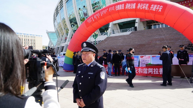 (李兢/通訊員)“這位大叔,給您普及一下‘掃黑除惡’和‘緝槍治爆’方面的知識吧?!卑⒆笃旃簿置窬铢i程正在向來往的群眾發(fā)放宣傳單并耐心講解著。4月20日,由阿拉善盟掃黑除惡專項斗爭領(lǐng)導(dǎo)小組主辦的“掃黑惡、清槍爆、忠誠保大慶”大型宣傳活動在巴彥浩特多功能體育場舉行,阿左旗公安局黨委高度重視此次活動,積極組織相關(guān)警種參與其中,并通過電視新聞采訪、制作擺放宣傳展板、播放宣傳片以及發(fā)放宣傳單等形式,向廣大人民群眾宣傳普及掃黑除惡和緝槍治爆的知識,營造了人人參與、人人知曉的良好宣傳氛圍。