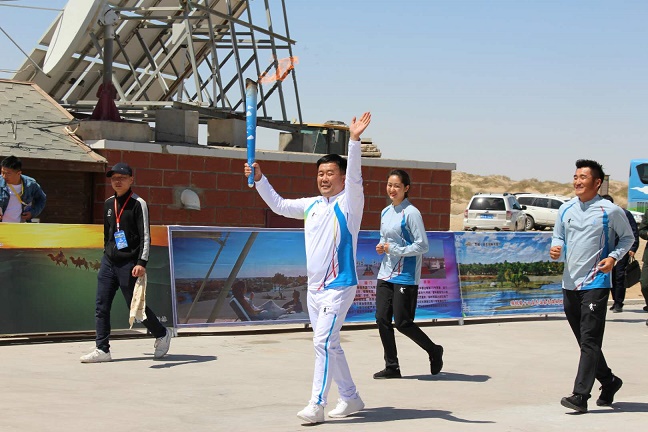 (屈惠玲 馬騰 /通訊員)5月15日,中華人民共和國第十四屆冬季運動會火炬?zhèn)鬟f阿拉善站啟動儀式在額濟納旗舉行。
