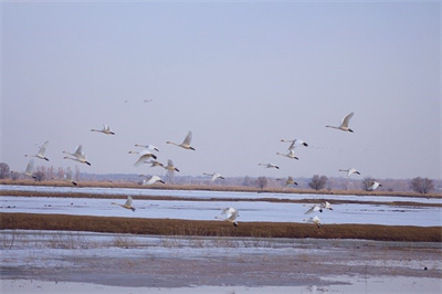 (姜鑫/通訊員)春回大地,草長(zhǎng)鶯飛,又到一年候鳥(niǎo)北歸季。近年來(lái),托克托縣持續(xù)推動(dòng)黃河流域生態(tài)保護(hù)和高質(zhì)量發(fā)展,多措并舉不斷強(qiáng)化濕地保護(hù)和修復(fù),黃河濕地生態(tài)環(huán)境得到極大改善。進(jìn)入3月以來(lái),在托克托縣黃河濕地內(nèi),已經(jīng)有200余種候鳥(niǎo)在此處棲息。成群結(jié)隊(duì)的天鵝、鴻雁、赤麻鴨等各種珍稀鳥(niǎo)類(lèi),時(shí)而三五成群、展翅翱翔,時(shí)而戲水游玩、引吭高歌,展現(xiàn)出了濕地特有的生態(tài)畫(huà)卷。