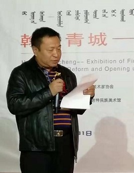 ? ? 開幕式——呼和浩特市新城區(qū)文聯(lián)主席李育講話,索英鐫致答謝辭,呼和浩特民族美術(shù)館館長(zhǎng)向新城區(qū)美協(xié)主席戴培誠等名家頒發(fā)收藏證書,閆瑛娟女士主持。