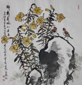 朱家騫:從內(nèi)蒙師大美術(shù)系畢業(yè)后哪十多年主要?jiǎng)?chuàng)作,是以宣傳畫、人物畫、連環(huán)畫、剪紙等為主。學(xué)習(xí)花鳥畫是從到湖北美院開始,內(nèi)部《花鳥畫刊》經(jīng)??l(fā)吳昌碩,齊白石,潘天壽,李苦禪,湯文選,魯慕迅,馮今松等湖北花鳥畫家的作品。當(dāng)時(shí)湯文選院長說:”吳、齊、潘、李″是當(dāng)今花鳥畫大師,學(xué)畫者只有"取法乎上,僅得其中"。這段時(shí)間資料匱乏,只能從報(bào)紙雜志上收集,在北京舉辦的各種展覽盡力趕往觀摩學(xué)習(xí)。同時(shí)對《石濤畫語錄》、《黃賓虹畫語錄》、《潘天壽聽天閣畫語錄》徐復(fù)觀《論中國藝術(shù)精神》等等相關(guān)的大量的中外美術(shù)史,美術(shù)理論,美術(shù)研究,中國畫繪畫技法,書法理論技法,詩詞文學(xué)進(jìn)行了長期的研讀,逐步對晉唐、宋、元、明、清花鳥畫的脈絡(luò),發(fā)展史有了清晰的認(rèn)識(shí)。特別對宋元明清的花鳥大師陳淳,徐渭,八大進(jìn)行了深入的學(xué)習(xí)研究,對歷代大師的筆墨、造型、構(gòu)圖、設(shè)色加以提煉。深刻領(lǐng)悟大師的思想,牢記大師的箴言:"學(xué)我者生,似我者死";"用最大的功力打進(jìn)去,用最大的勇氣闖出來";中國畫"畫似與不似之間,太似媚俗,不似欺人";"干裂秋風(fēng),春含潤雨″氣韻生動(dòng)的筆墨意境和創(chuàng)作態(tài)度。