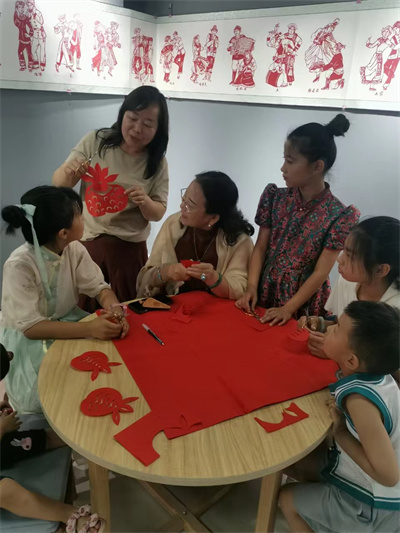 剪紙名家包曙光輔導(dǎo)孩子們學(xué)習(xí)剪紙。