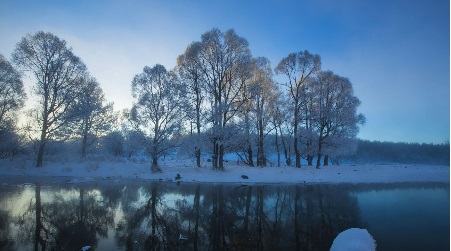 美麗神奇的不凍河啊,你是冬日里萬籟俱寂中蒼天賞賜給阿爾山的鮮活生命源。這冰封死寂中的勃勃生機(jī)帶給人們多少生命的渴望和美麗的慰藉啊!為了固化你的厚澤和情懷,我怎能不投身于你的懷抱,用我的薄力用相機(jī)和這支拙筆,記錄下你的浪漫和詩意,讓世人感受到你的純美和壯麗!