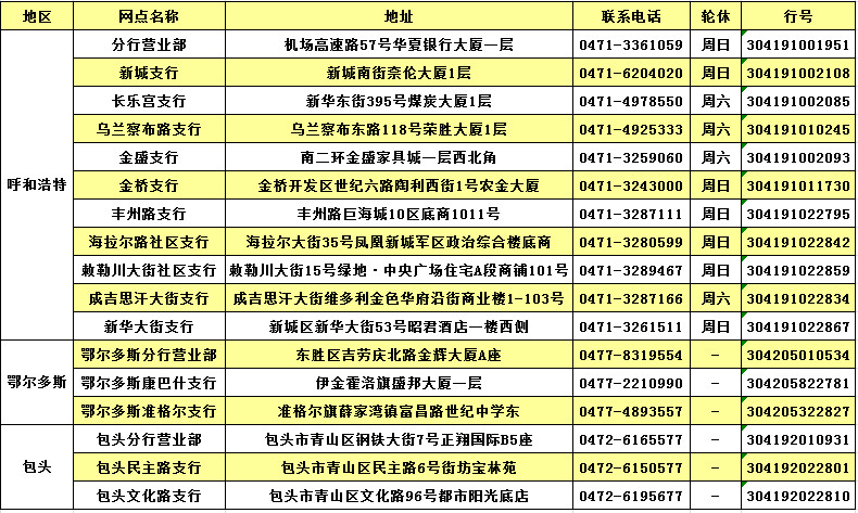 華夏銀行呼和浩特分行網(wǎng)點(diǎn)信息