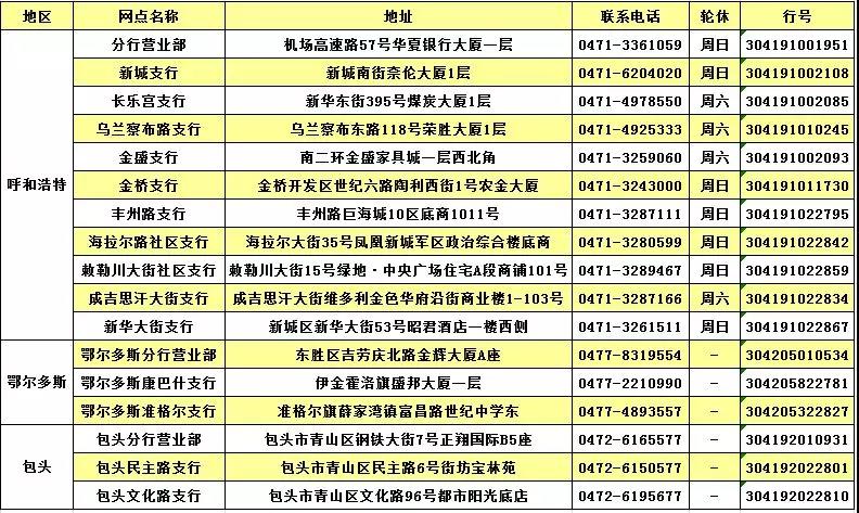 華夏銀行呼和浩特分行網(wǎng)點信息
