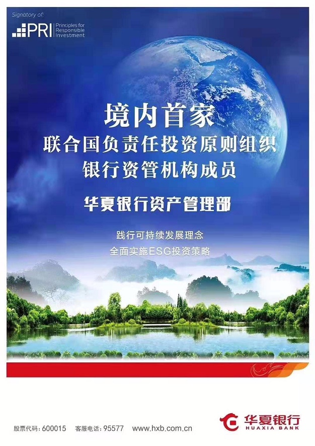 “創(chuàng)新、協調、綠色、開放、共享”五大發(fā)展理念,引導和鼓勵更多社會資金投向環(huán)保、節(jié)能、清潔能源、清潔交通等綠色產業(yè),引領經濟向更可持續(xù)的方向前進。2019年3月19日,華夏銀行資產管理部成功加入了聯合國支持的國際非盈利機構——“負責任投資原則”組織(Principles for Responsible Investment Association,簡稱“PRI”),成為該組織境內首家商業(yè)銀行資產管理機構成員,開啟了積極實施ESG(環(huán)境、社會和公司治理)策略、將社會責任納入投資決策的高質量金融發(fā)展新征程。作為我國該領域銀行資管機構 “第一個吃螃蟹的人”,2019年4月23日,華夏銀行資產管理部創(chuàng)新推出了首支ESG 主題系列理財產品——“龍盈固定收益類ESG 理念理財產品01號”。該產品重點投資于綠色債券、綠色資產支持證券以及ESG 表現良好企業(yè)的債權類資產,行業(yè)策略涵蓋節(jié)能環(huán)保、清潔能源、生態(tài)保護等環(huán)保題材,在為客戶提供投資回報的同時,實踐ESG可持續(xù)發(fā)展投資理念。