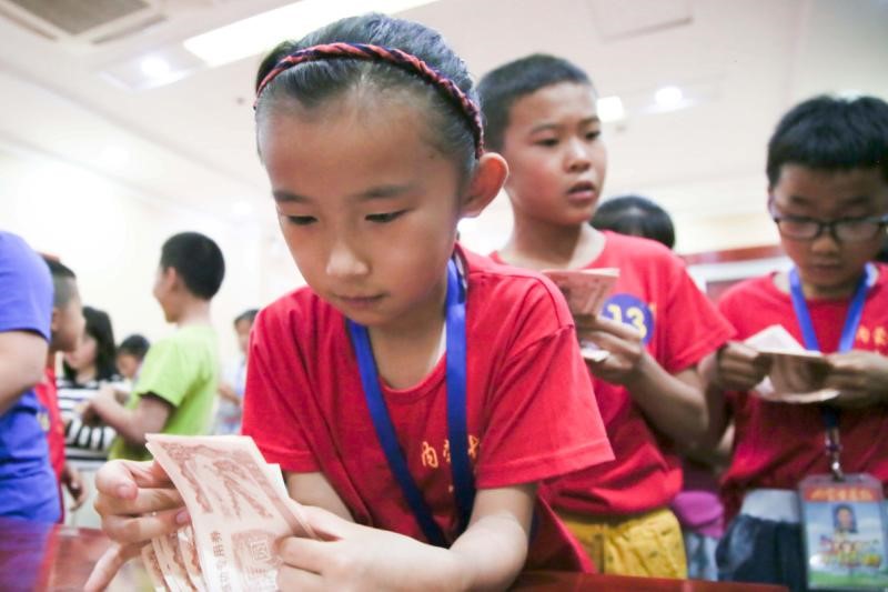 小記者每人拿起一沓點鈔練功券,有模有樣地點了起來,但是手中的“錢”怎么也不聽使喚。比賽過程中,還有小記者鼓勵自己的隊員:“沒關(guān)系,只要數(shù)對數(shù)就好了?!庇胁簧傩∮浾叨几袊@道:“點鈔也是需要技巧的,不能太著急。”